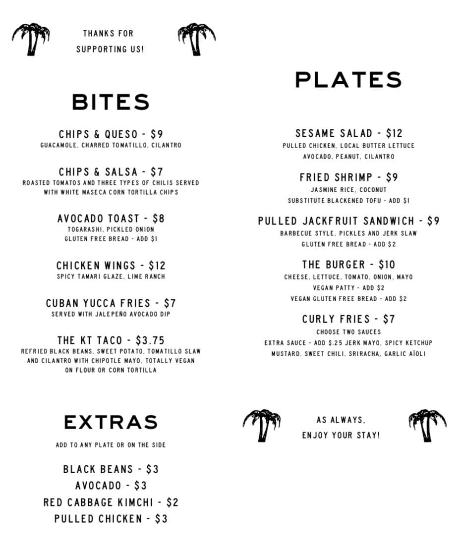 Kinda Tropical in Austin, TX, offers a vibrant menu that perfectly complements its laid-back, cozy atmosphere. This restaurant and bar shines with its flavorful, shareable dishes like the crispy Curly Fries paired with garlic aioli and spicy ketchup, and the uniquely spiced Cuban Yucca Fries served alongside a zesty jalapeño avocado dip. The Chips & Salsa and Chips & Queso featuring guacamole, charred tomatillo, and hot sesame oil, highlight bold, fresh flavors inspired by Latin and tropical influences.